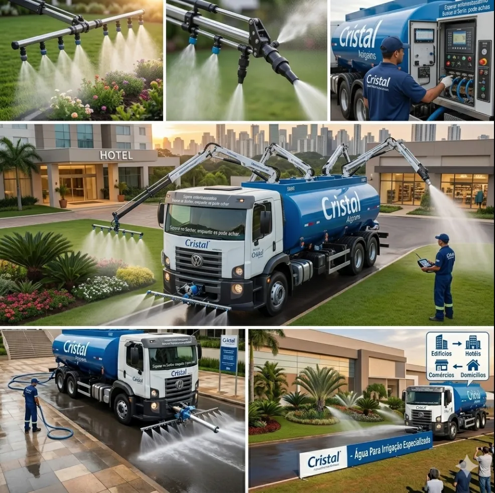 Com bico especial, irrigamos os jardins de edificios, hotéis, comercios e domicilios.