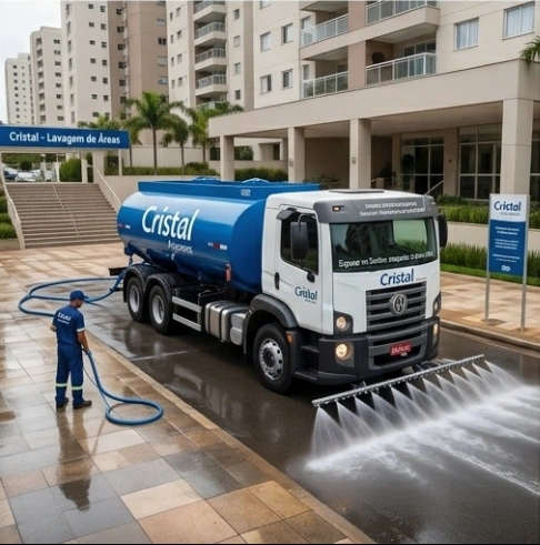 Com jato acoplado ao caminhão, realizamos a lavagem de calçadas, asfaltos e garagens.